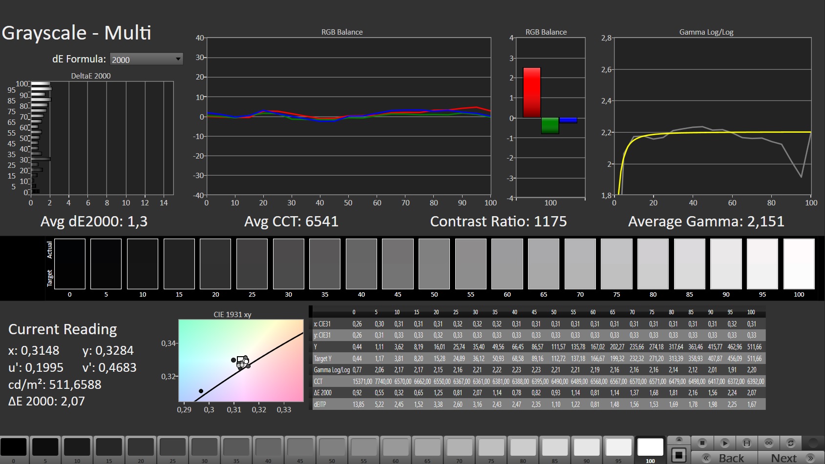 ΔE Greyscale Calman: 1.3 | ∀{0.09-98 Ø5}