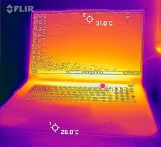 En el lado de los contras, Schenker no mejoró el sistema de refrigeración, que sigue siendo ruidoso especialmente en el perfil de rendimiento, incluso en carga media. La aplicación del centro de control permite curvas de ventilador personalizadas, pero es necesario configurarlas para cada aplicación. Un punto negativo respecto a la versión del año pasado es la autonomía de la batería, que parece haberse reducido considerablemente, a pesar de contar con la misma capacidad de 99 Wh. Debido a esto, el Key 17 Pro M24 puede utilizarse como sustituto de sobremesa o como mucho en flujos de trabajo híbridos. La pantalla IPS 4K es suficientemente brillante, pero el contraste y el nivel de negro parecen bajos para este nivel de precio, además la webcam 1080p incluida es más bien mediocre.