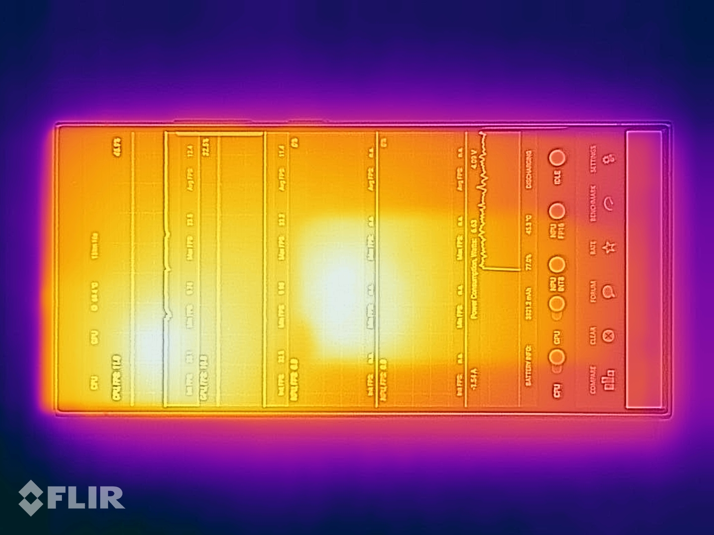El Samsung Galaxy S24 Ultra siempre se mantiene agradablemente frío en reposo, pero se calienta significativamente bajo carga, lo que comprobamos con el banco de pruebas Burnout, aunque las temperaturas superficiales siempre se mantienen en un nivel seguro