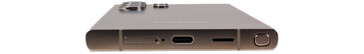 El Samsung Galaxy S24 Ultra utiliza por primera vez un marco de aleación de titanio, pero esto no tiene un impacto significativo en el peso, ya que sólo es un gramo más ligero que su predecesor. Samsung especifica una altura de 8,6 milímetros, lo que confirman nuestras mediciones. Las lentes pequeñas de la cámara sobresalen 1,2 milímetros, las más grandes 2,15 milímetros. Si la S24 Ultra está sobre una mesa, por ejemplo, puede tambalearse mucho