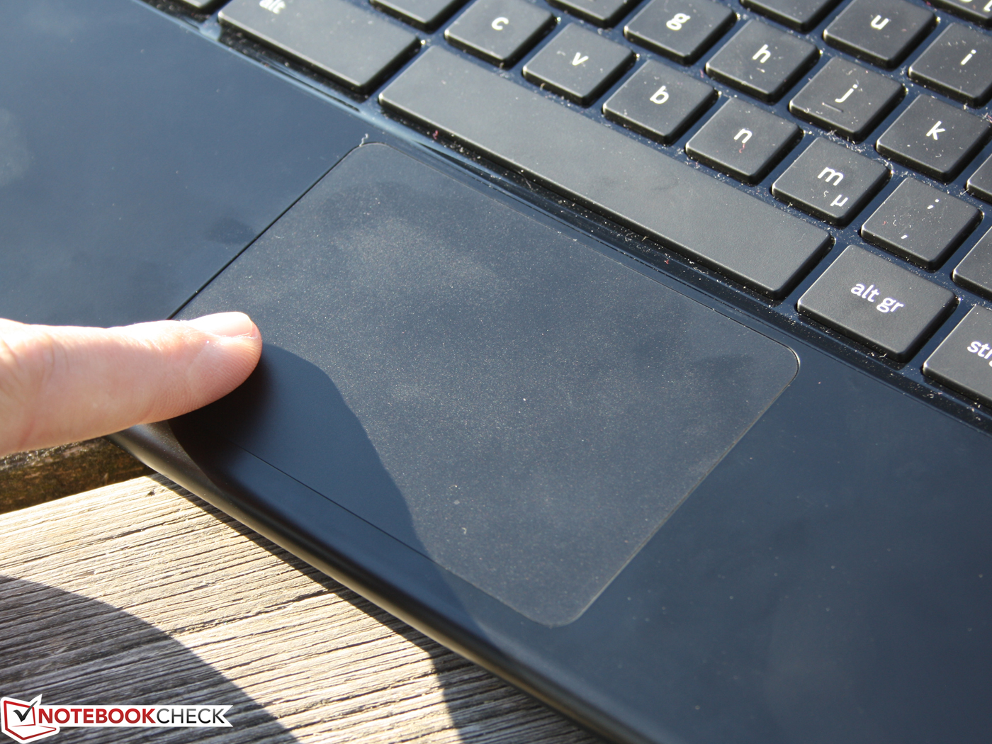 Según la preferencia, el pad multitáctil con la excepcionalmente gran superficie puede operarse en una de dos maneras. Presionando la superficie produce un simple click, presionando con dos dedos produce un doble click. Aquellos que prefieran el click como en Windows puedden cambiarlo en los ajustes de Chrome. No hay barras de desplazamiento horizontal o vertical. El desplazamiento puede hacerse con dos dedos.