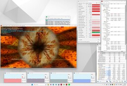 Nuestro test de estrés (ejecutando Prime95 y FurMark durante un periodo prolongado) representa un escenario extremo diseñado para comprobar la estabilidad de un sistema a plena carga. La CPU funcionó a altas velocidades de reloj (núcleos P: 3,4 a 3,5 GHz, núcleos E: 3,1 a 3,2 GHz) desde el principio, y la GPU funcionó a entre 1,0 y 1,6 GHz. Posteriormente, el reloj de la CPU descendió con relativa rapidez, mientras que el de la GPU superaba los 2 GHz.