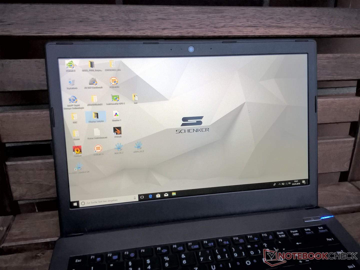 La pantalla del Schenker Slim 14 es un panel IPS con una resolución de 1920x1080 píxeles. En la evaluación de visualización, nuestra unidad de prueba deja atrás la mayoría de los portátiles de la competencia. En particular, el alto brillo asegura una ventaja. Los valores de contraste y los tiempos de reacción también son competitivos. Sin embargo, se nota en nuestras mediciones que el brillo de la pantalla cae significativamente desde la esquina superior derecha hasta la esquina inferior izquierda. El brillo en el área inferior es aproximadamente 75 cd/m² más bajo que en el borde superior. Schenker no ofrece pantallas alternativas para Slim 14.