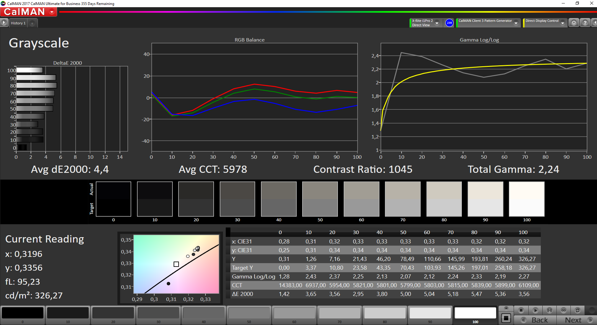 ΔE Greyscale Calman: 4.4 | ∀{0.09-98 Ø5}