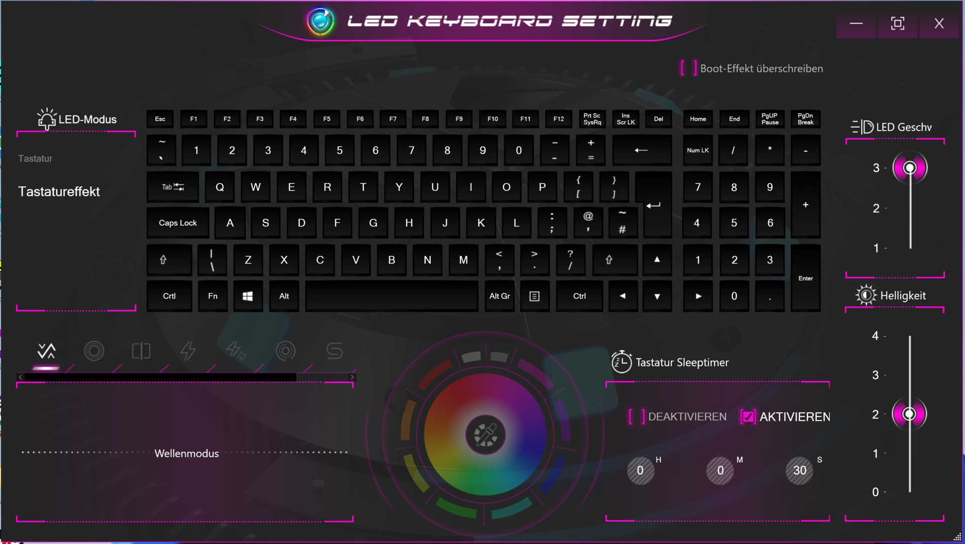 El portátil Schenker está equipado con un teclado chiclet RGB retroiluminado que incluye un teclado numérico. Las teclas planas y suaves ofrecen un recorrido medio y un punto de accionamiento claro. Estamos satisfechos con la respuesta de las teclas. El área del teclado cede ligeramente al escribir. Esto no fue un problema durante nuestras pruebas. La retroiluminación del teclado tiene tres ajustes de brillo, que se pueden controlar a través de dos teclas de función. En general, el teclado es adecuado para el uso diario
