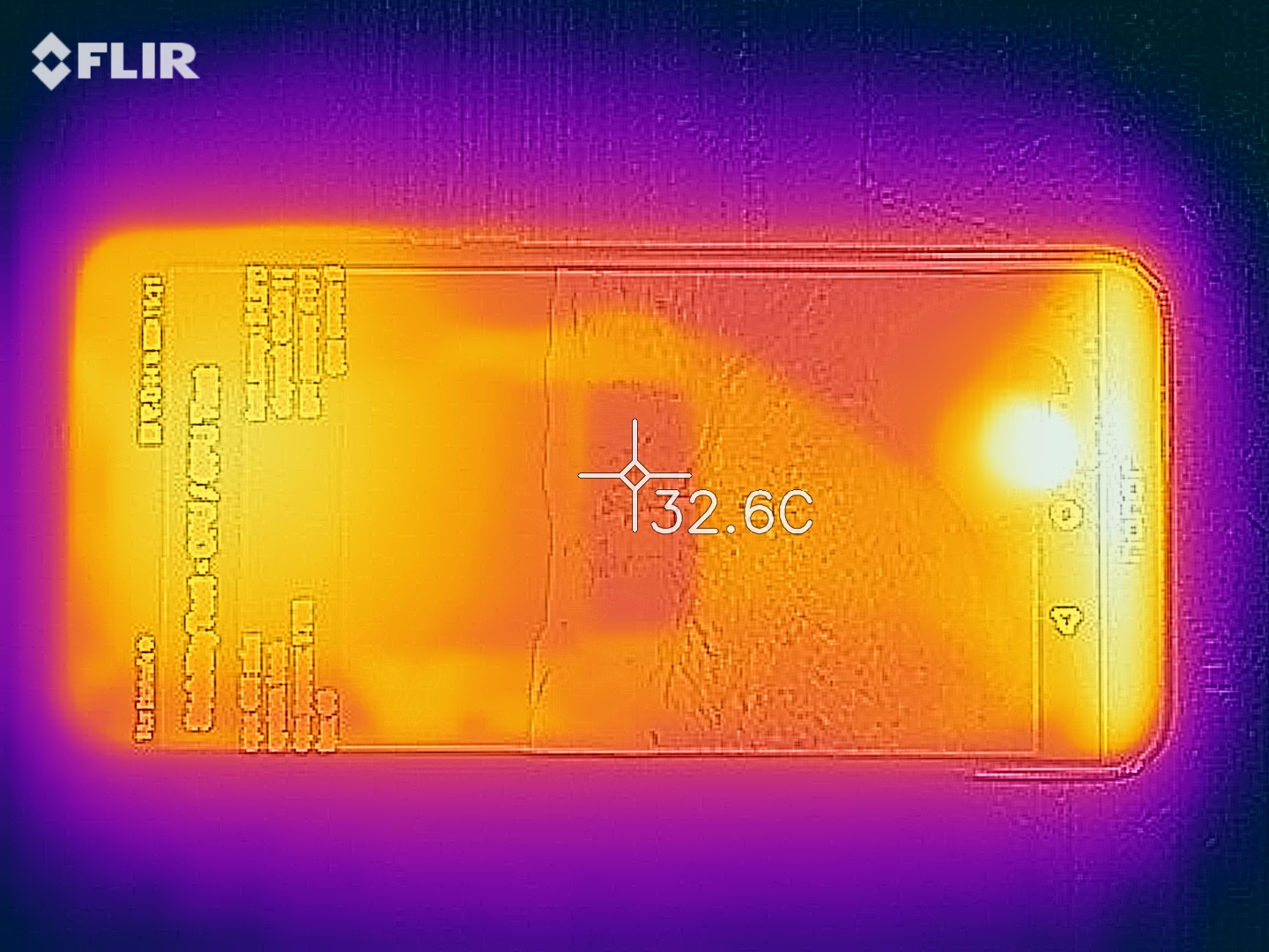 (+) La temperatura máxima en la parte superior es de 34.6 °C / 94 F, frente a la media de 35.2 °C / 95 F, que oscila entre 21.9 y 247 °C para la clase Smartphone.