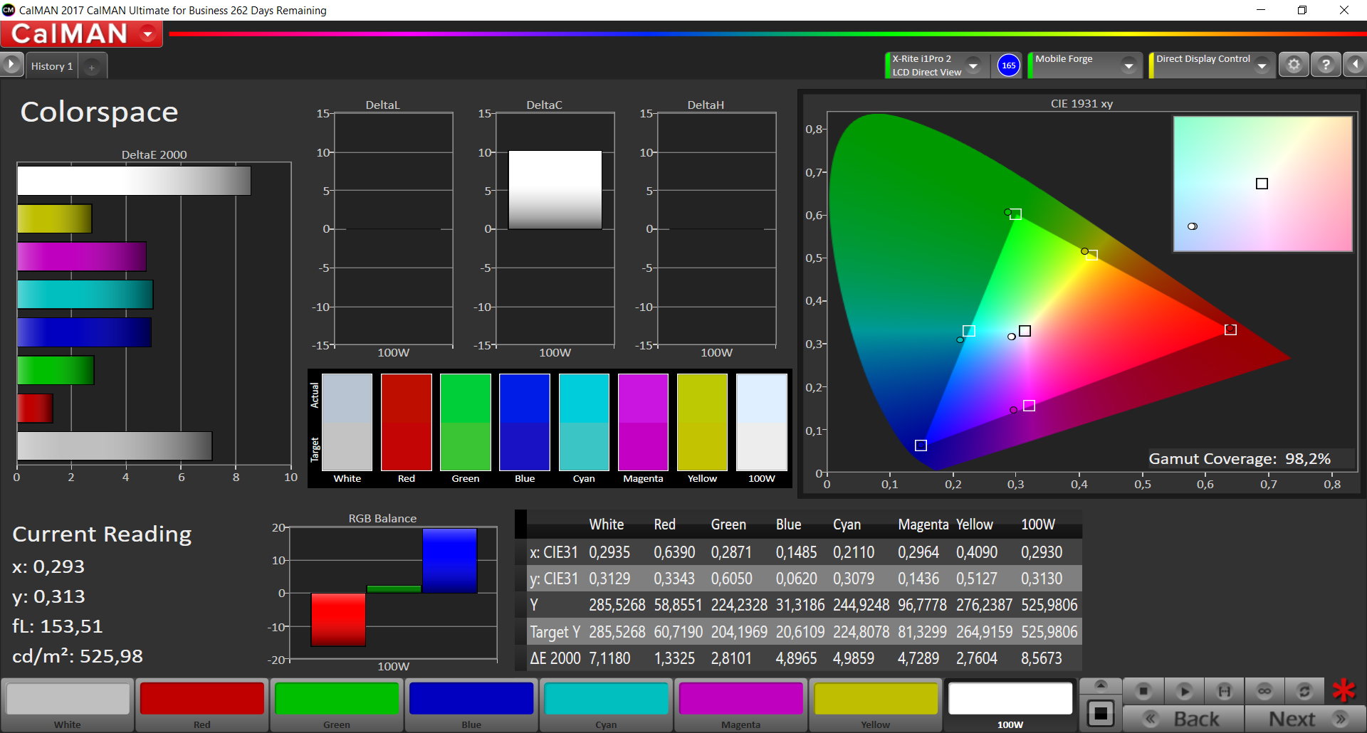 ΔE Greyscale Calman: 5.8 | ∀{0.09-98 Ø5}