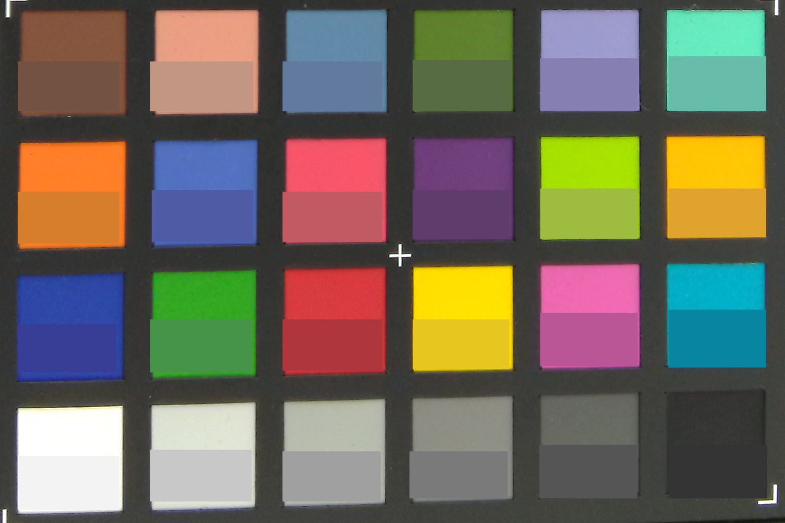 | Colorchecker dE 2000 * | 5.3 | 5.4 -2% | 4.6 13% | 6.2 -17% |
