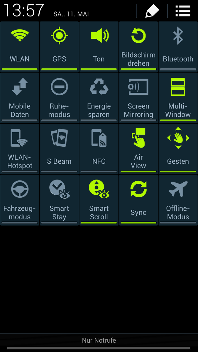 Incluso el Android de serie está ya tan lleno de diferentes configuraciones y ajustes que puede ser difícil no sentirse abrumado en ocasiones. Samsung empaqueta incluso mas opciones en el Galaxy S4, pero al menos las ordena en cuatro categorías diferentes, lo que ayuda a estar al tanto de las cosas.