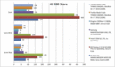Usando el benchmark del sistema Mac OS X, XBench 1.3, comprobamos el rendimiento del sistema usando Mac OS X. Infelizmente los resultados varían ampliamente con algunas sub-pruebas, motivo por el cual realizamos varias pruebas con el mismo color.