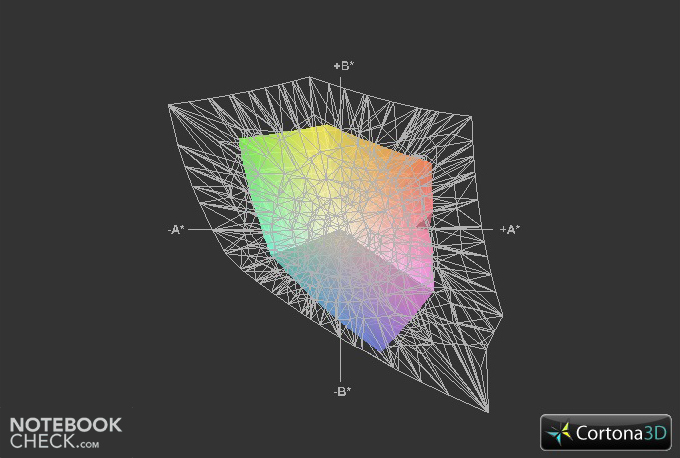 A pesar de una alineación profesional, el espectro de color reproducible se mantiene en un nivel estándar, considerablemente debajo de sRGB. Editores de imagen y diseñadores gráficos verán una razón posible de crítica. Usuarios de office no hallarán restricciones.