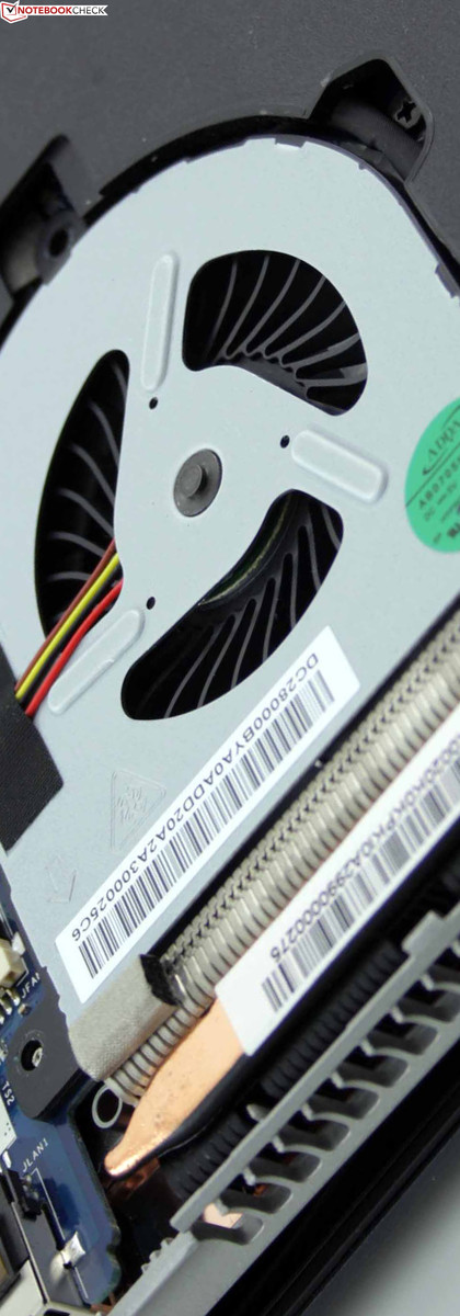 ¿Dónde están los altavoces? La música parece salir del área de la bisagra, por lo que creemos que están situados sobre el teclado. Abrir la carcasa nos da la razón. Los pequeños altavoces están suspendidos en un amortiguador de goma móvil. Así la membrana puede vibrar mejor. El resultado es un sonido acústicamente similar al de los portátiles multimedia de gama alta o de un MacBook Pro. No hay distorsiones a volumen alto y los agudos y medios son claros y definidos.