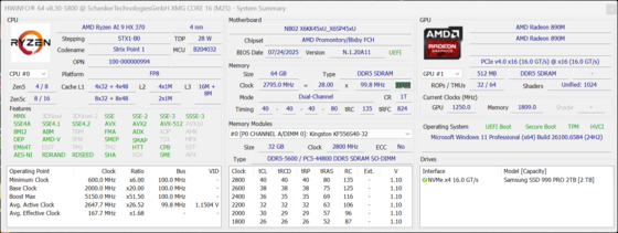 SCHENKER XMG Core 16 M25 AMD Ryzen AI 9 HX 370 ⎘ Nvidia GeForce RTX 5070 Laptop ⎘ 64 GB Memoría, 2048 GB SSD | Precio de catálogo: 2100€ | 2.1 kg | 23 mm | 16.00" 2560x1600 189 PPI IPS | |
