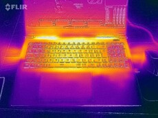 La prueba de estrés y Witcher 3 test provocaron un aumento significativo de las temperaturas del portátil. En ciertas zonas, medimos temperaturas superiores a los 60 grados Celsius. En el uso diario (oficina, Internet), estos valores se mantienen en general dentro de la zona verde, pero en un nivel superior al de competidores como elLenovo Legion Slim 7i 16 Gen 8.