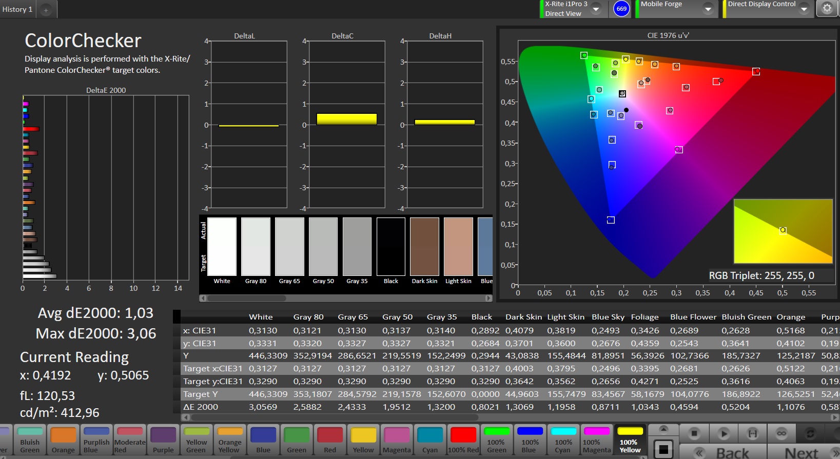 ΔE ColorChecker Calman: 1.03 | ∀{0.5-29.43 Ø4.78}