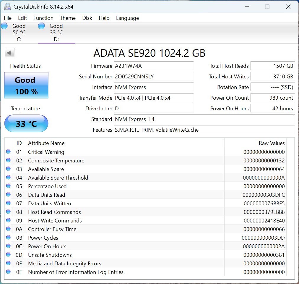 | Connectivity - USB 3.x / USB4 / TB - AS SSD Seq Read Test (1GB) | |