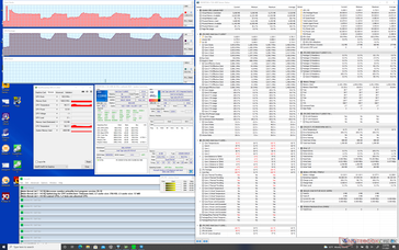 Cuando se estresa con Prime95, la CPU se eleva a 4 GHz durante el primer par de segundos hasta alcanzar una temperatura del núcleo de 100 C. La velocidad de reloj se estabiliza en torno a los 3,1 GHz durante el siguiente par de minutos hasta que finalmente se mueve entre 1,8 GHz y 3,1 GHz y entre 73 C y 100 C indefinidamente. Este comportamiento cíclico es similar al de la serie XPS 13 que también utiliza la Política de Energía Dinámica de Dell para exprimir más rendimiento de la CPU. La mayoría de los otros portátiles con la misma CPU, como el MSI Summit Flipse estabilizarían en un rango más plano de 2.8 a 3.0 GHz y 94 C cuando se someten a condiciones similares. El inconveniente del enfoque de Dell es que las velocidades de reloj pueden ser inestables como resultado.