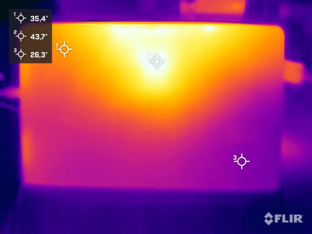 (-) El fondo se calienta hasta un máximo de 46.3 °C / 115 F, frente a la media de 36.8 °C / 98 F