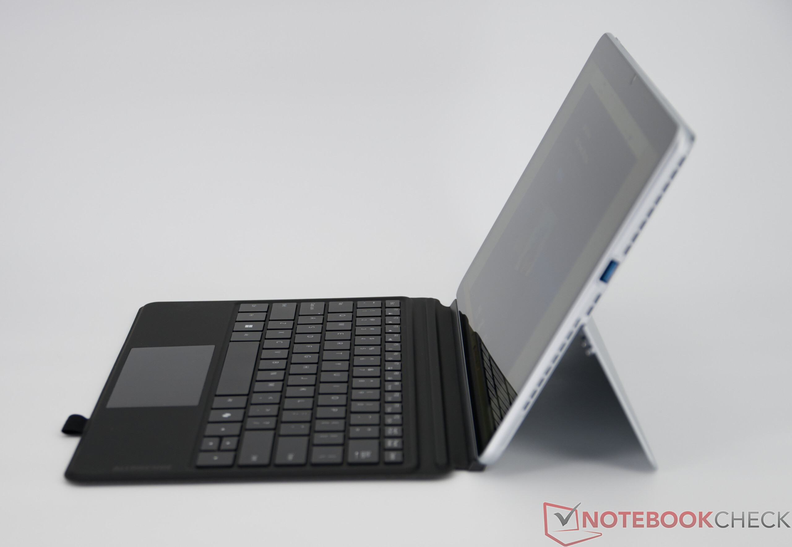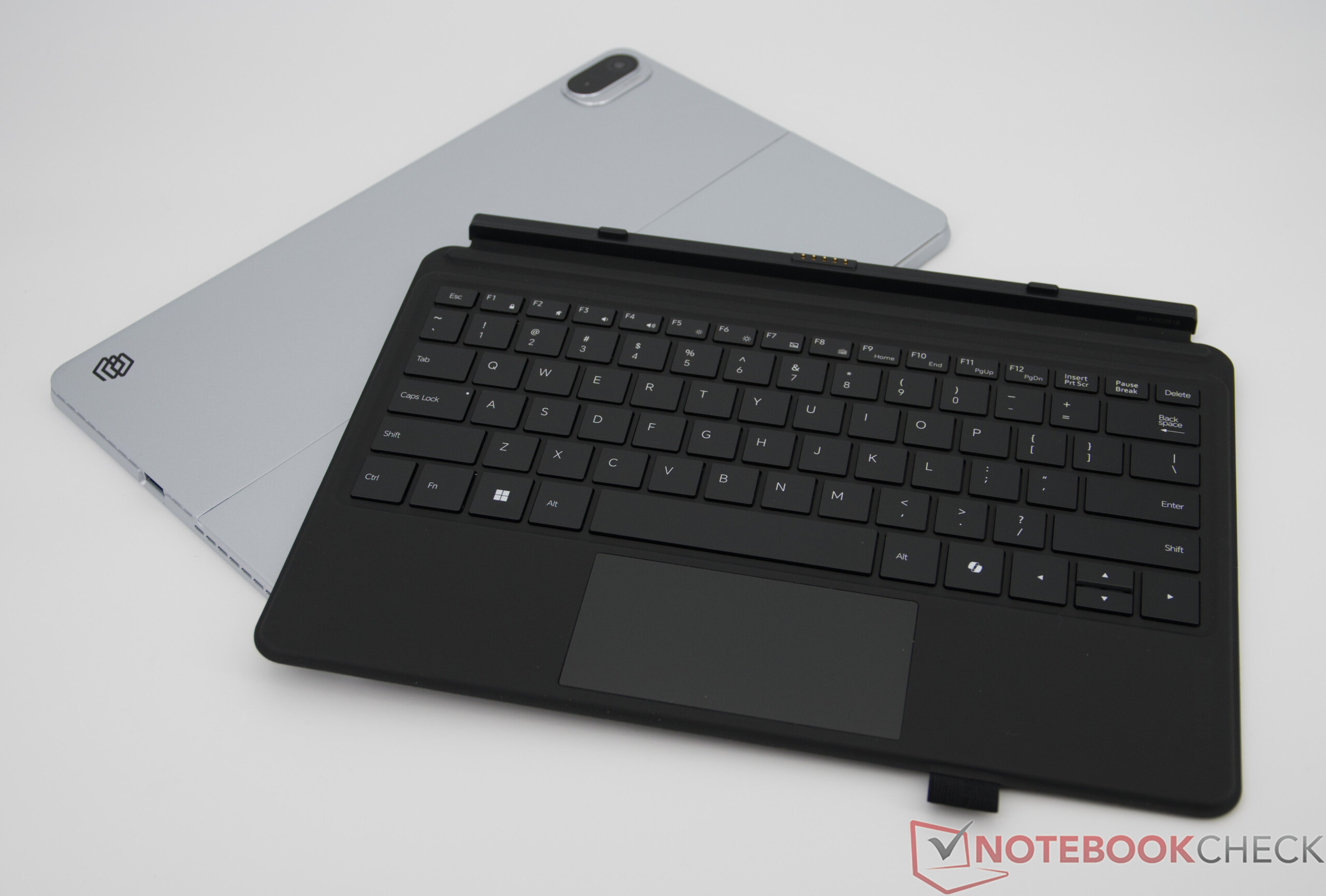 La cubierta opcional del teclado tiene retroiluminación, aunque el recorrido de las teclas es bastante superficial y las entradas son algo más ruidosas. En general, la sensación al teclear es, no obstante, sólida y claramente más agradable que en un teclado en pantalla. Sin embargo, debe tenerse en cuenta que sólo está disponible la distribución en inglés. Una característica positiva es la retroiluminación blanca, que facilita el trabajo en condiciones de poca luz. El ClickPad integrado es bastante pequeño, pero cumple su función en el uso diario.
