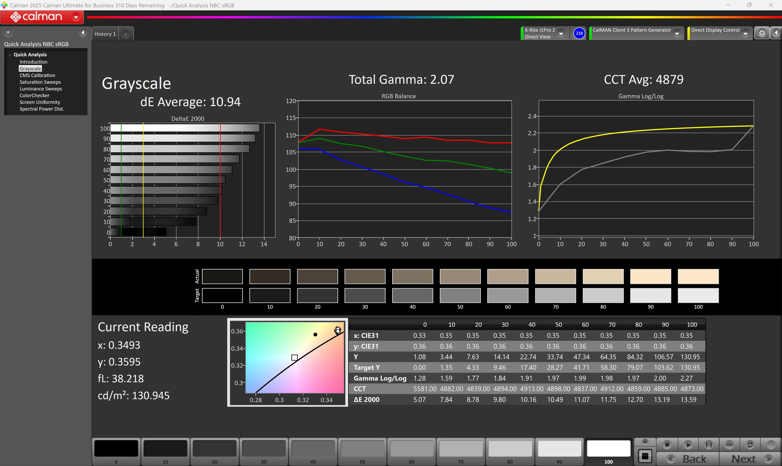 ΔE Greyscale Calman: 8.43 | ∀{0.09-98 Ø5}