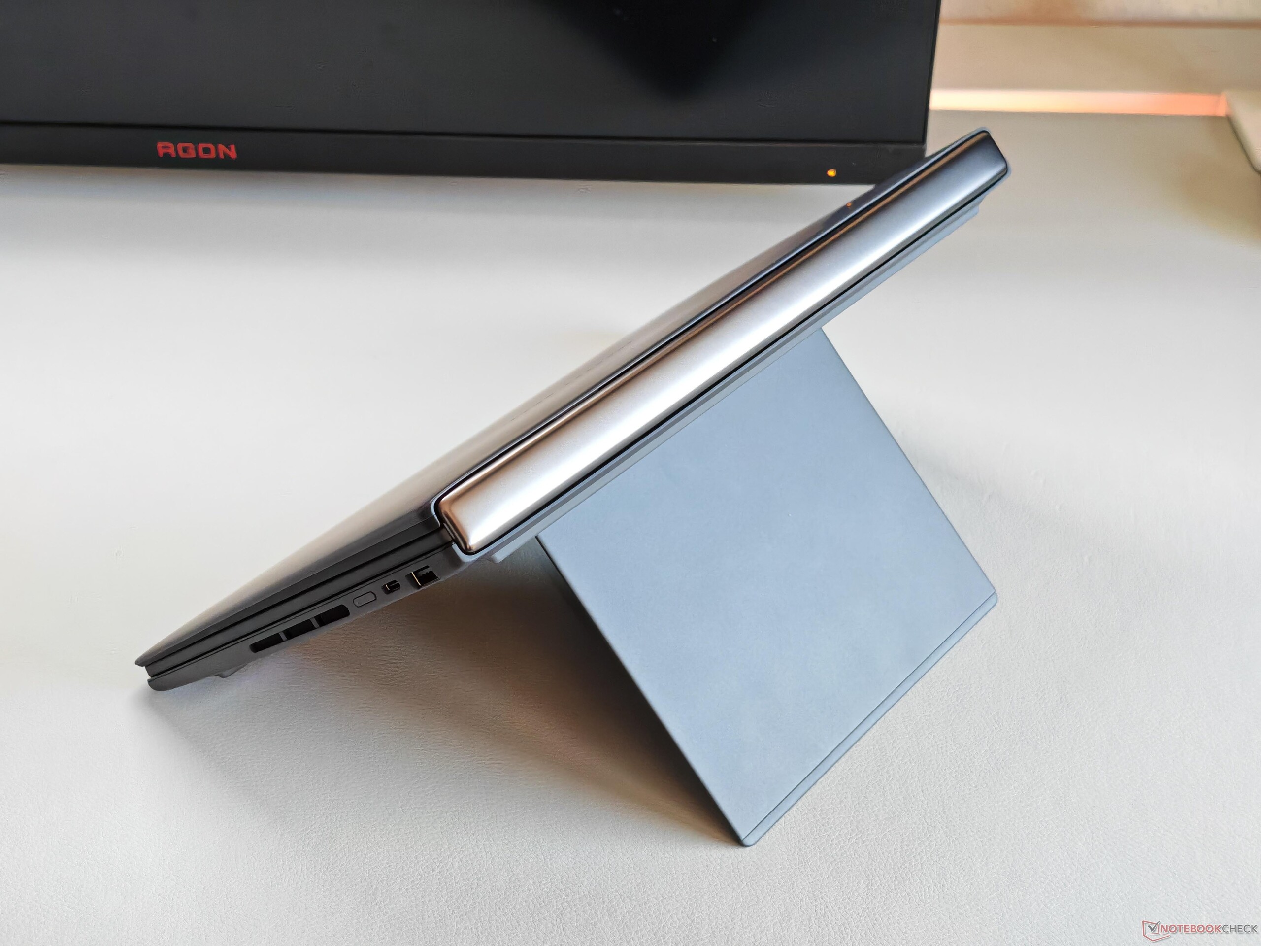 El sistema de dos pantallas es realmente muy utilizable en la práctica, pero también voluminoso (unos 2,3 cm de grosor sin pies, 2,7 cm con ellos) y no especialmente ligero, con 1,7 kg. Esta es una diferencia notable respecto a los portátiles convencionales de 14 pulgadas y el nuevo modelo también es ligeramente más grueso que su predecesor inmediato.