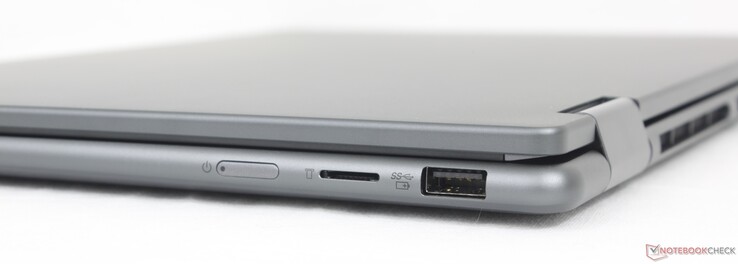 Todos los puertos del 2022 Yoga 7 14 2 en 1 han vuelto aunque reordenados. Aunque apreciamos los puertos Thunderbolt 4 duales, habría estado bien separarlos entre los dos lados del portátil como en el Razer Blade 14 para tener más libertad a la hora de cargar y conectar monitores externos. Modelos de la competencia como el Inspiron 14 7445 2 en 1 o el Envy x360 2 en 1 14 también integran más puertos USB-A que en nuestro Lenovo.