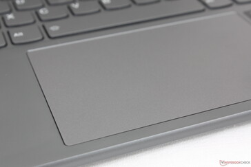 El tamaño del teclado sigue siendo el mismo que en el modelo del año pasado, 12 x 7,5 cm. Los usuarios tendrían que considerar actualizarse al modelo más caro Yoga 9 2 en 1 14 para obtener una superficie mayor de 13,5 x 8 cm. Aún así, el tamaño del clickpad actual es satisfactorio para el tamaño de pantalla de 14 pulgadas. Apreciamos especialmente la respuesta fuerte y chasqueante al pulsarlo, mientras que los clickpads de la mayoría de los otros portátiles tienden a ser más suaves y silenciosos.