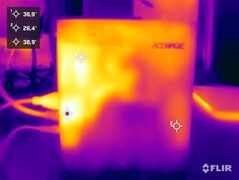 (+) La temperatura máxima en la parte superior es de 39.7 °C / 103 F, frente a la media de 36 °C / 97 F, que oscila entre 21.6 y 69.5 °C para la clase Mini PC.