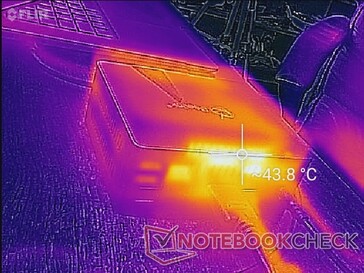 Las temperaturas de la superficie suelen ser frescas, incluso con cargas pesadas. La parte superior de la unidad se mantiene por debajo de los 30 C cuando funciona con Prime95. El punto caliente se encuentra a lo largo de la rejilla de ventilación trasera de la unidad, por donde se escapa el calor.