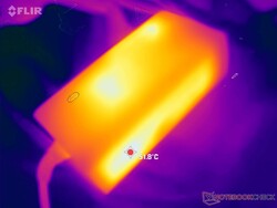 Registramos un consumo máximo de 50,2 W con el adaptador de pared pequeño-mediano (~10 x 4,9 x 3,3 cm) de 57 W cuando la CPU se utiliza al 100%. Sospechamos que puede ser aún mayor si se conectan varios dispositivos USB o monitores USB-C externos.