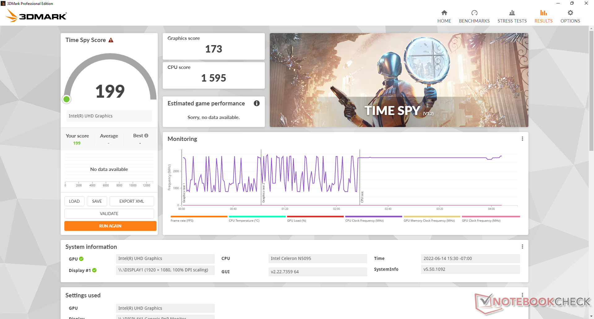 El rendimiento gráfico es pobre con resultados que están por debajo incluso de los antiguosUHD Graphics 620 en más de un 50%. No esperes poder ejecutar ni siquiera los juegos 3D menos exigentes, ya que este mini PC en particular fue diseñado más bien para el streaming de vídeo FHD o 4K.