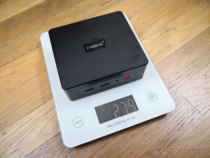Un aspecto notable del Beelink es su peso muy ligero de sólo 279 g en comparación con los más de 500 g del Intel NUC 11. Los materiales más finos del chasis del Beelink y la ausencia de una jaula metálica interna para reforzarlo contribuyen a las importantes diferencias de peso entre los dos modelos.