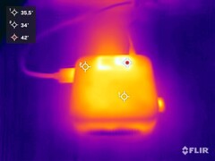Bajo carga, la carcasa del Blackview no se calienta realmente. Sólo medimos temperaturas más altas alrededor de la zona de salida del ventilador en la trasera del dispositivo. El panorama es ligeramente diferente cuando se trata del procesador en sí - notamos un máximo de 90 °C durante el test de estrés con Prime95. Sigue estando bien y no hay de qué preocuparse. Su temperatura más alta se alcanzó justo después del arranque, cuando el SoC aún tenía un Turbo máximo de hasta 3.4 GHz. Más adelante, la temperatura se estabilizó en 76 °C.
