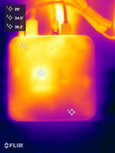 (+) El fondo se calienta hasta un máximo de 36.1 °C / 97 F, frente a la media de 36.3 °C / 97 F