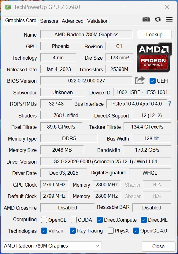 El Geekom A7 Max con AMD Ryzen 9 7940HS se basa en la gráfica integrada Radeon 780M, cuyo nivel de rendimiento es sólido en nuestro análisis, pero se ve limitado en general por estar equipado con un solo módulo de RAM. En las pruebas sintéticas, el sistema queda por tanto por detrás de mini PC equipados de forma comparable, mientras que en los juegos sólo se alcanzan velocidades de fotogramas utilizables limitadas. La iGPU es suficiente para escenarios de juego sencillos, pero como era de esperar, el A7 Max no puede competir con sistemas con una tarjeta gráfica dedicada como una RTX 4050.