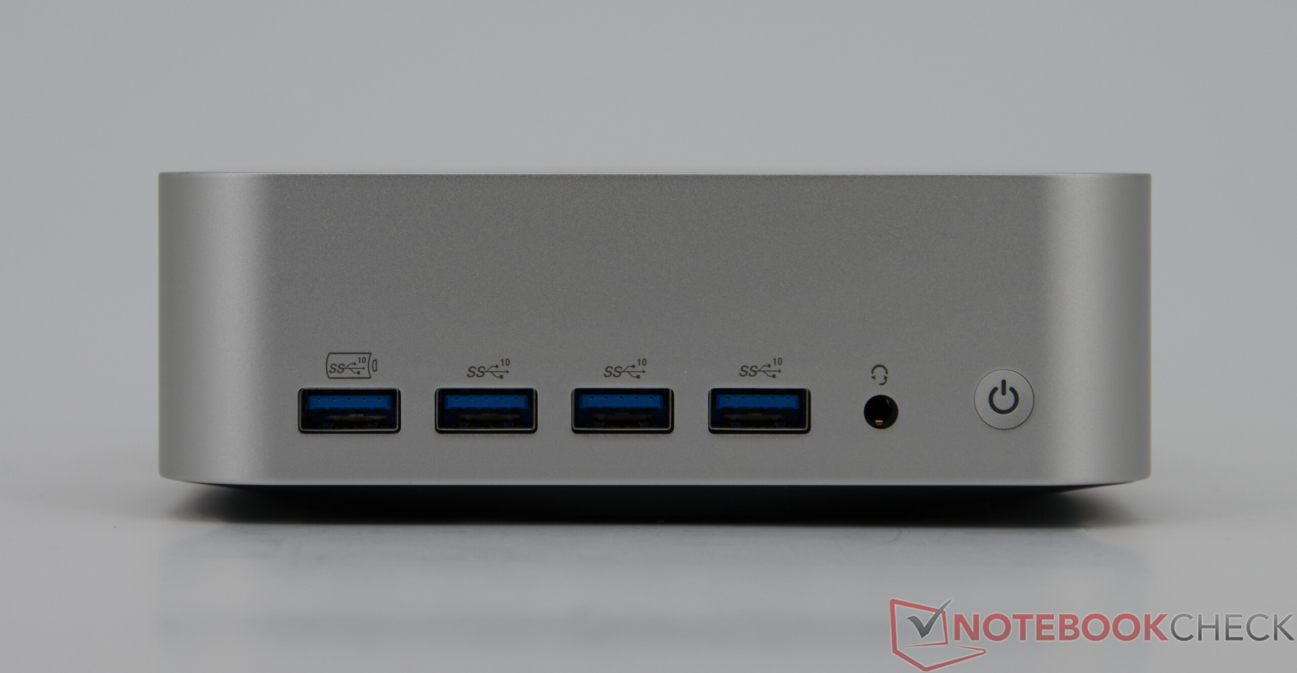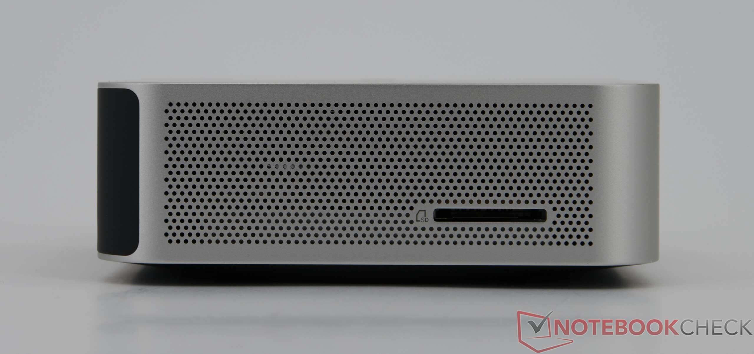 La carcasa de generosas dimensiones permite una amplia gama de conexiones: dispone de un total de seis puertos USB-A, cuatro de ellos en la parte frontal, que se complementan con dos puertos USB4 en la parte trasera y dos salidas HDMI. Esto permite utilizar hasta cuatro monitores simultáneamente. Un rápido lector de tarjetas SD en el lateral completa el equipo, mientras que USB4 permite altas velocidades de transmisión de datos, como demuestran de forma impresionante las unidades SSD externas.