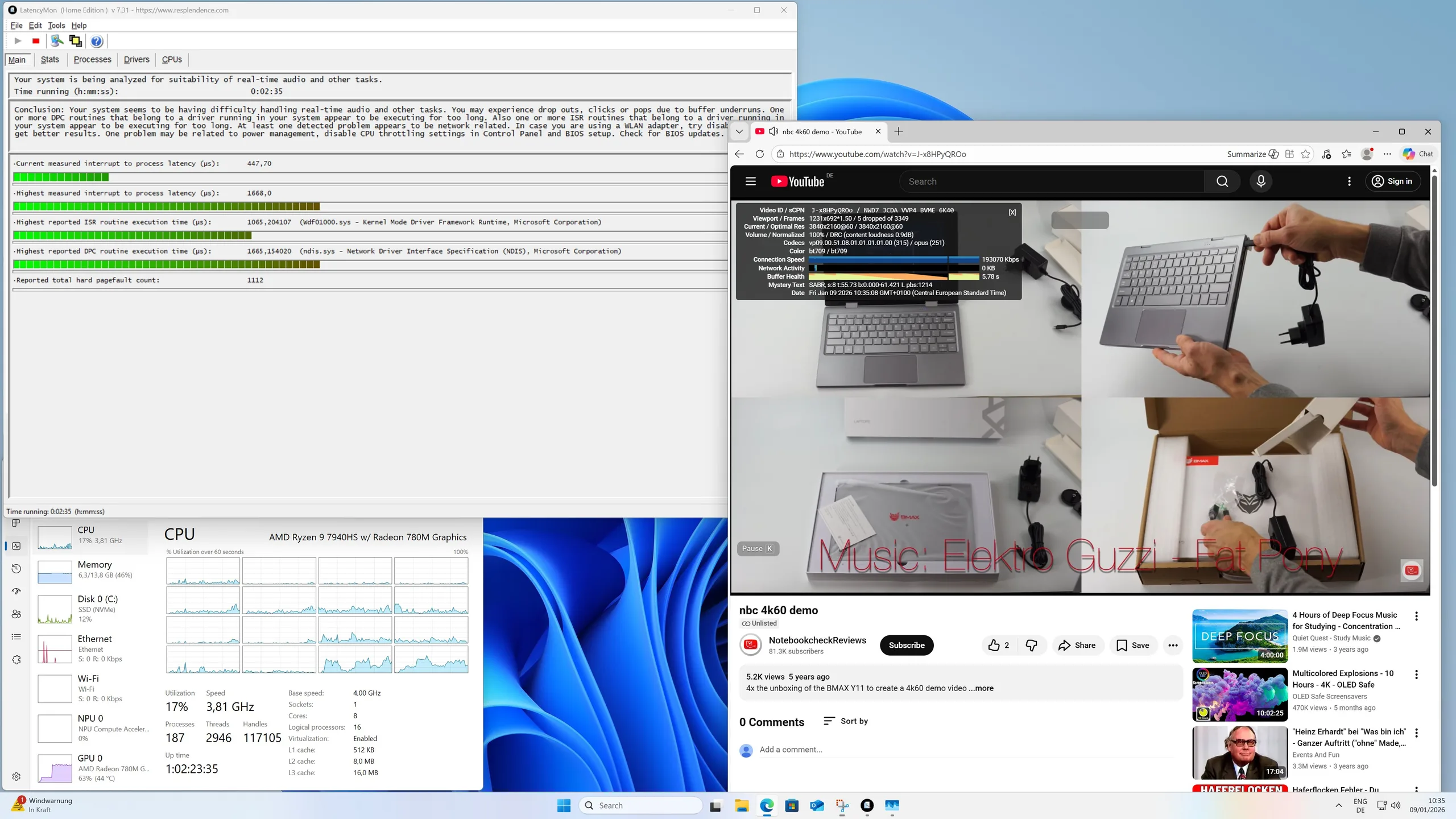 | DPC Latencies / LatencyMon - interrupt to process latency (max), Web, Youtube, Prime95 | |
