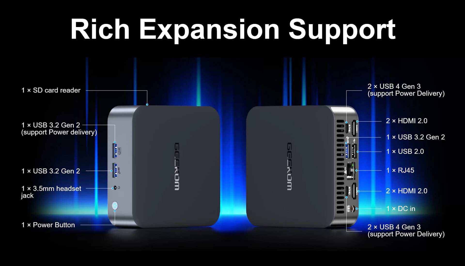 | Geekom GT13 Pro i9-13900H, Iris Xe G7 96EUs | Aoostar GEM12 R7 8845HS, Radeon 780M | Minisforum AtomMan X7 Ti Ultra 9 185H, Arc 8-Core | Geekom A8, R9 8945HS R9 8945HS, Radeon 780M | Geekom XT12 Pro i9-12900H, Iris Xe G7 96EUs | Acemagic F2A Ultra 7 155H, Arc 8-Core | Minisforum EliteMini UM780 XTX R7 7840HS, Radeon 780M | Khadas Mind i7-1360P, Iris Xe G7 96EUs | |