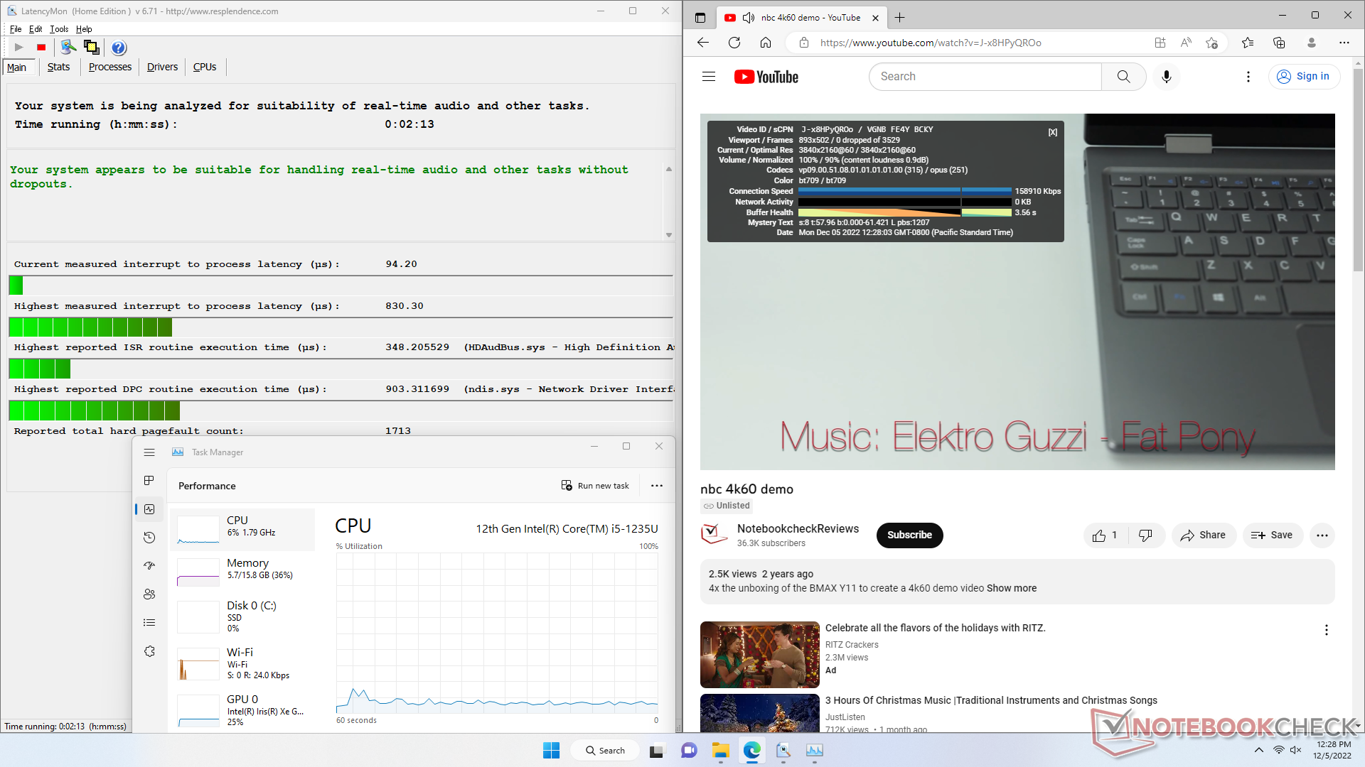 | DPC Latencies / LatencyMon - interrupt to process latency (max), Web, Youtube, Prime95 | |