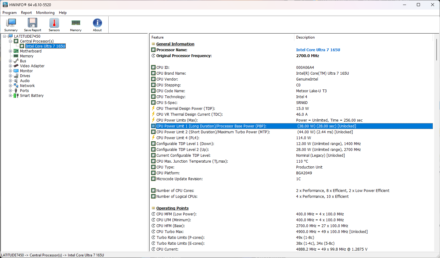 - Rendimiento: Core Ultra 7 165U vPro lucha por sostener 44 W PL2 durante mucho tiempo
