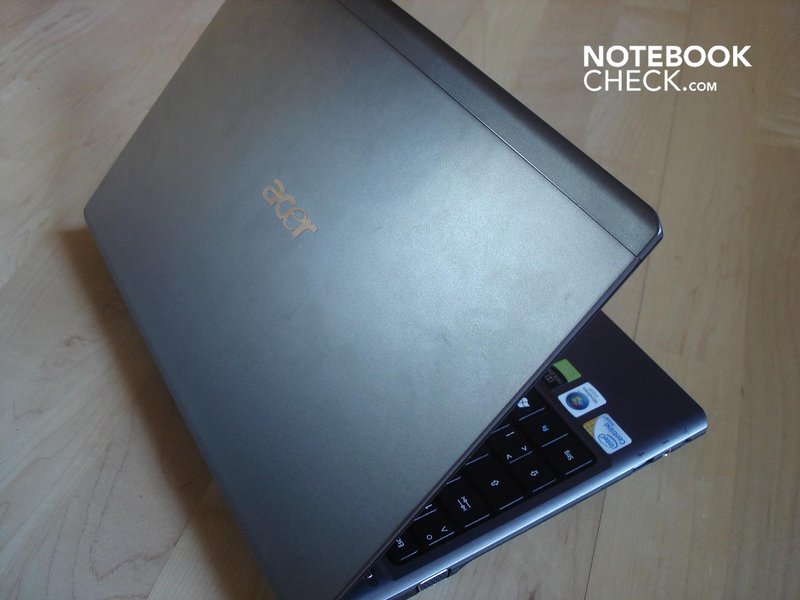 Con su poca altura de 29 milímetros como máximo y su elegante diseño, el Acer Aspire 3810T sabe como complacer a primera vista. Las partes exteriores de la tapa de la pantalla, así como la superficie alrededor del teclado se presentan en un coqueto plateado mate, que apenas se ensucia. El interior de la tapa de la pantalla se muestra en oposición en un gris más oscuro y con apariencia de más barato. La fabricación es muy buena ya que casi no hay filos puntiagudos o zonas poco trabajadas. Todo, incluyendo los materiales, parece de calidad y con estilo. Unicamente la parte posterior parece un poco chapucera debido a la batería bastante ancha, en contraste. Sin embargo, cuando el portatil está abierto no se ve demasiado.