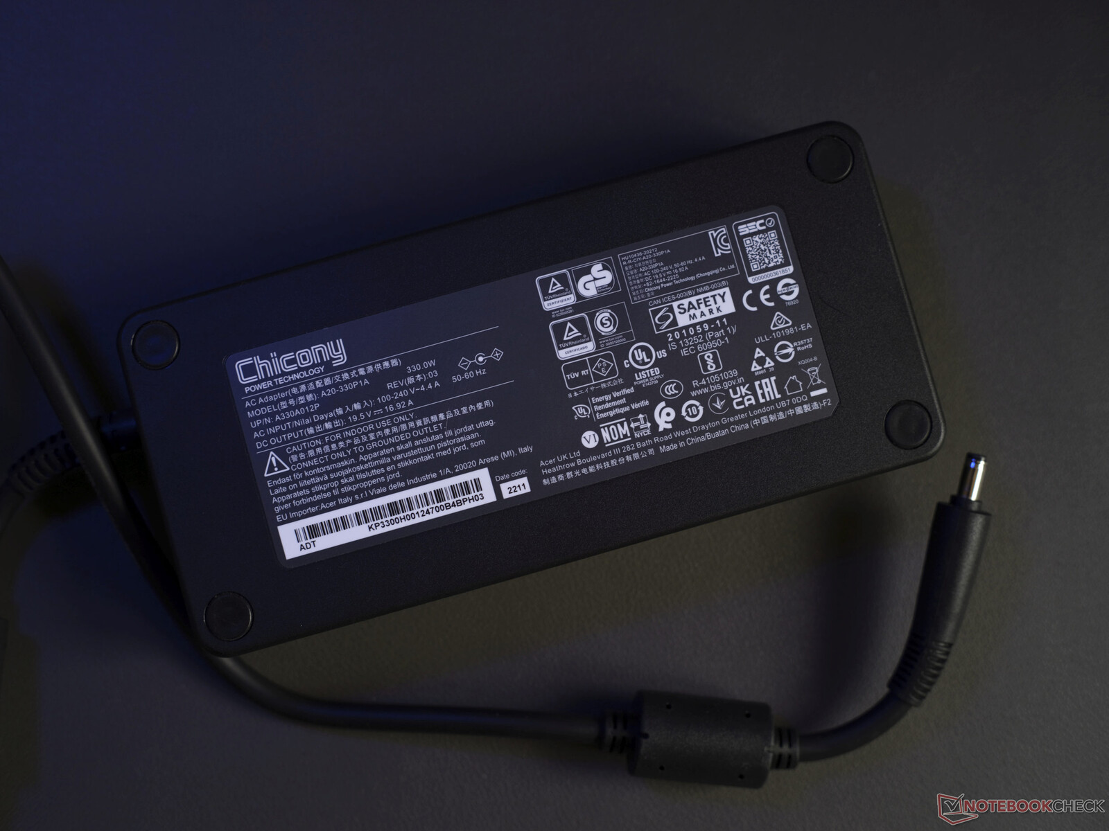 Acer ha incluido dos rejillas magnéticas de ventilador adicionales de color gris claro para reemplazar las preinstaladas de color gris oscuro. Unos acentos de color más atrevidos habrían sido divertidos. Aparte de eso, sólo está la fuente de alimentación de 330 vatios. El fabricante no ha optado por un embalaje respetuoso con el medio ambiente.