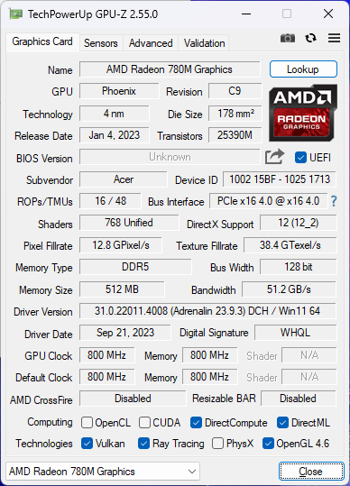 | Acer Swift Edge SFE16 Ryzen 7 7840U (AV Pro V60) | |