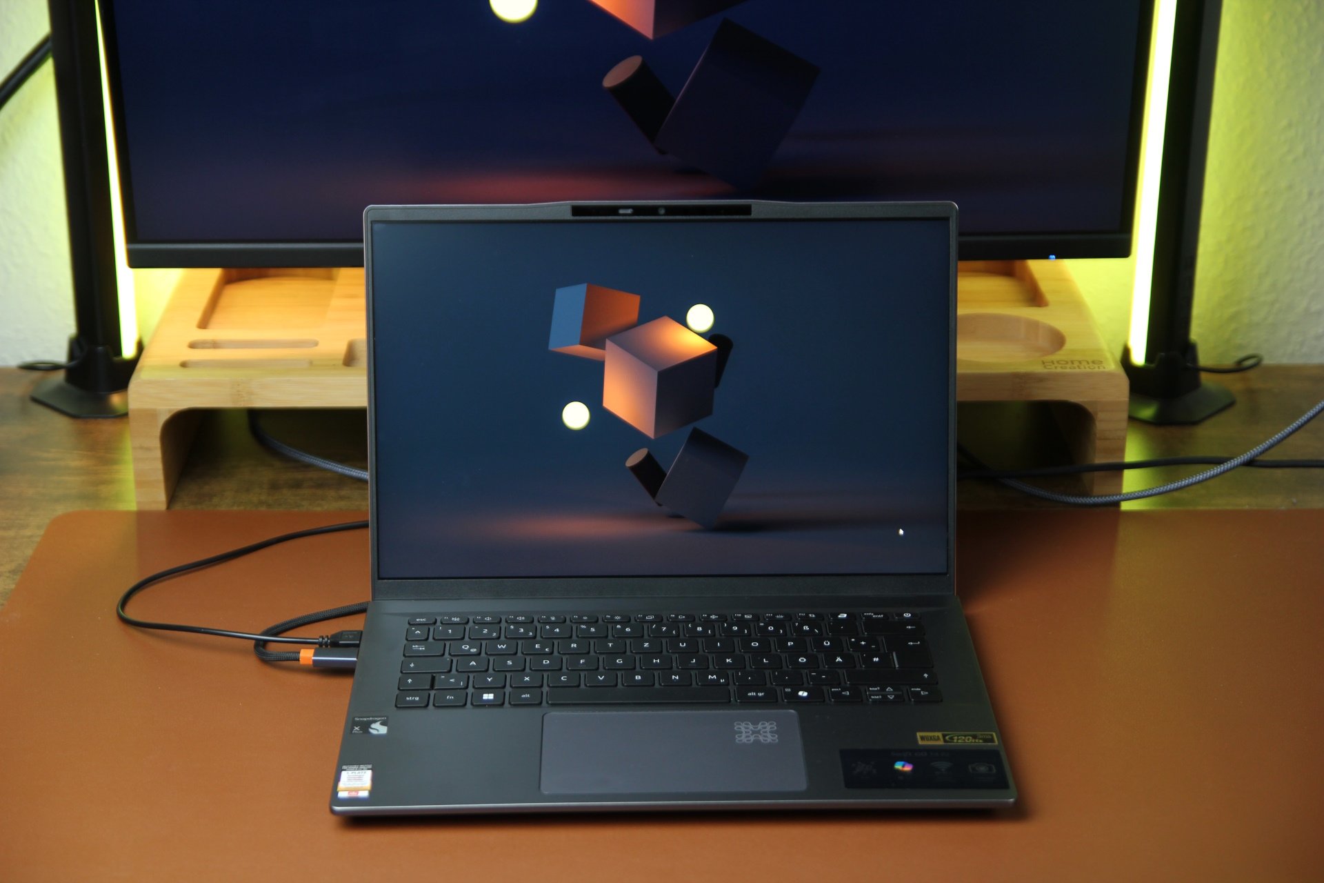 No obstante, los procesadores ARM para Windows aún no han alcanzado su objetivo, ya que varias aplicaciones aún no están optimizadas para ARM y, por tanto, funcionan de forma más bien modesta en términos de rendimiento. Otra desventaja de los SoC es que casi ningún componente puede sustituirse, la RAM y el módulo WiFi están permanentemente soldados e incluso la unidad SSD está oculta tras un cable de banda ancha. ¿Y por qué Acer ha eliminado tantos puertos, a pesar de que las dimensiones de la carcasa han aumentado ligeramente? Si no fuera por la gran duración de la batería, apenas habría ventajas sobre el predecesor más potente con CPU Intel. Quizás las habría, ya que el ruido y la temperatura también son factores importantes para un portátil de oficina.
