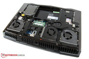 Para mantener suficientemente frescos los componentes de alta gama, Alienware ha instalado nada menos que 3 ventiladores: Uno para la CPU y uno para cada GPU. En comparación con la última revisión, los niveles de ruido no han cambiado mucho.