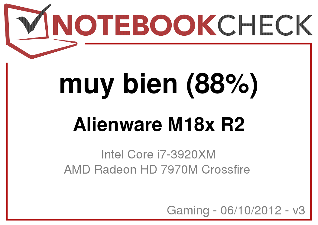 El rendimiento de sistema sobresale sin duda. En PCMark Vantage (22421 puntos) así como en PCMark 7 (5323 puntos), el M18x se lleva la victoria. Ningún portátil de nuestra base de datos puntúa tan alto - incluso top models como el Asus G75VW o el Schenker XMG P702 PRO pueden lograr varios cientos de puntos menos.
