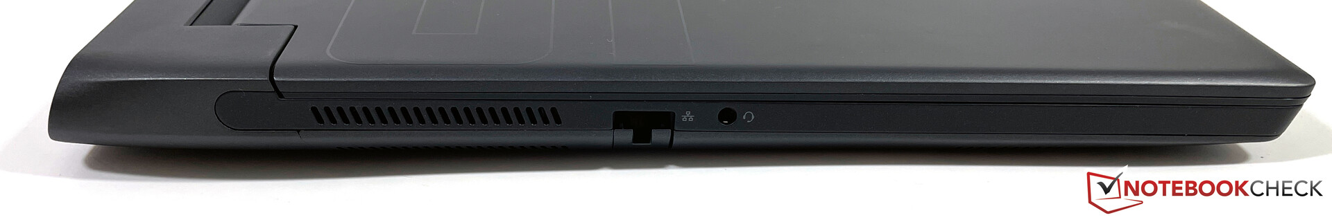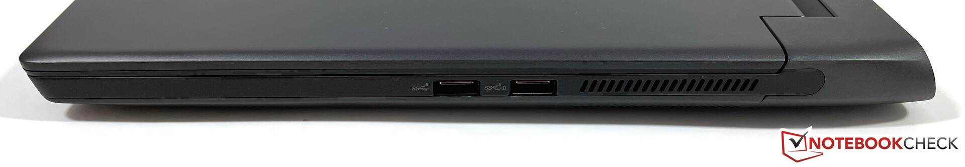 La selección de puertos es peor en comparación con el antiguo modelo. No hay más puertos USB en el lado izquierdo y tanto el lector de microSD como el puerto del amplificador gráfico han desaparecido. Los jugadores al menos siguen teniendo un conector Ethernet rápido (2.5 Gbps). No soporta Thunderbolt; el puerto USB-C de la parte trasera soporta la salida DisplayPort pero no puede usarse para cargar el dispositivo. El m15 R6 con CPUs Intel tiene soporte Thunderbolt, pero los puertos son idénticos por lo demás.