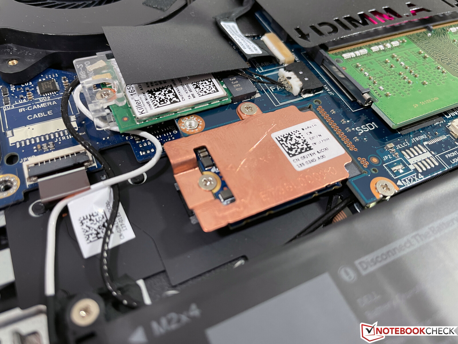 No hay mantenimiento dedicado, pero el panel inferior sólo está asegurado con un par de tornillos Philips y es fácil de quitar. Tienes acceso a las dos ranuras de RAM así como a las dos ranuras M.2 para SSDs. A diferencia del anteriorm15 R4sin embargo, sólo puedes usar módulos M.2-2242 más pequeños y la segunda bandeja faltaba en nuestra unidad de prueba. También puedes sustituir el módulo Wi-Fi de Killer y limpiar los ventiladores.