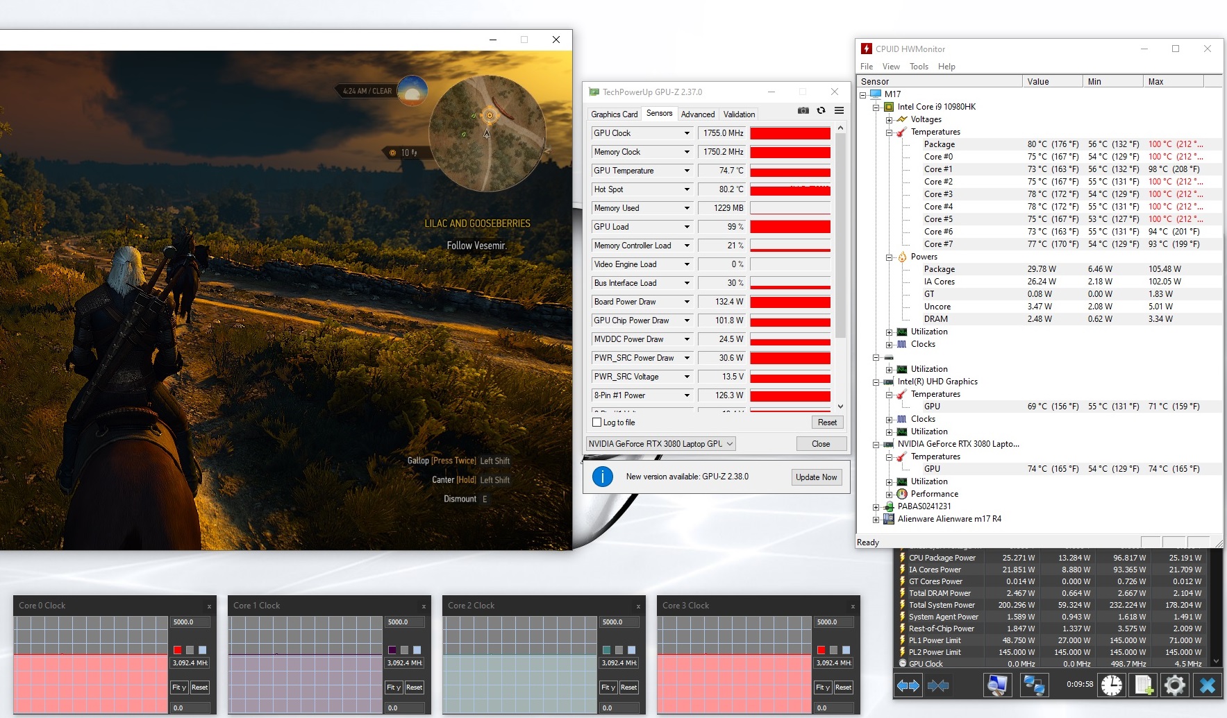 El Alienware m17 R4 ofrece un tremendo rendimiento gráfico, pero es incapaz de disipar el calor general del sistema adecuadamente, lo que resulta en parpadeos de pantalla y superficies muy calientes.