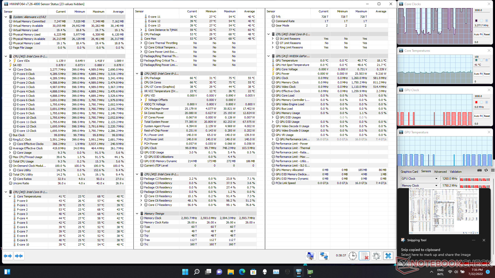 Las pruebas de estrés del Alienware x15 R2 nos indican cómo varían varios parámetros de la CPU y la GPU bajo diferentes cargas